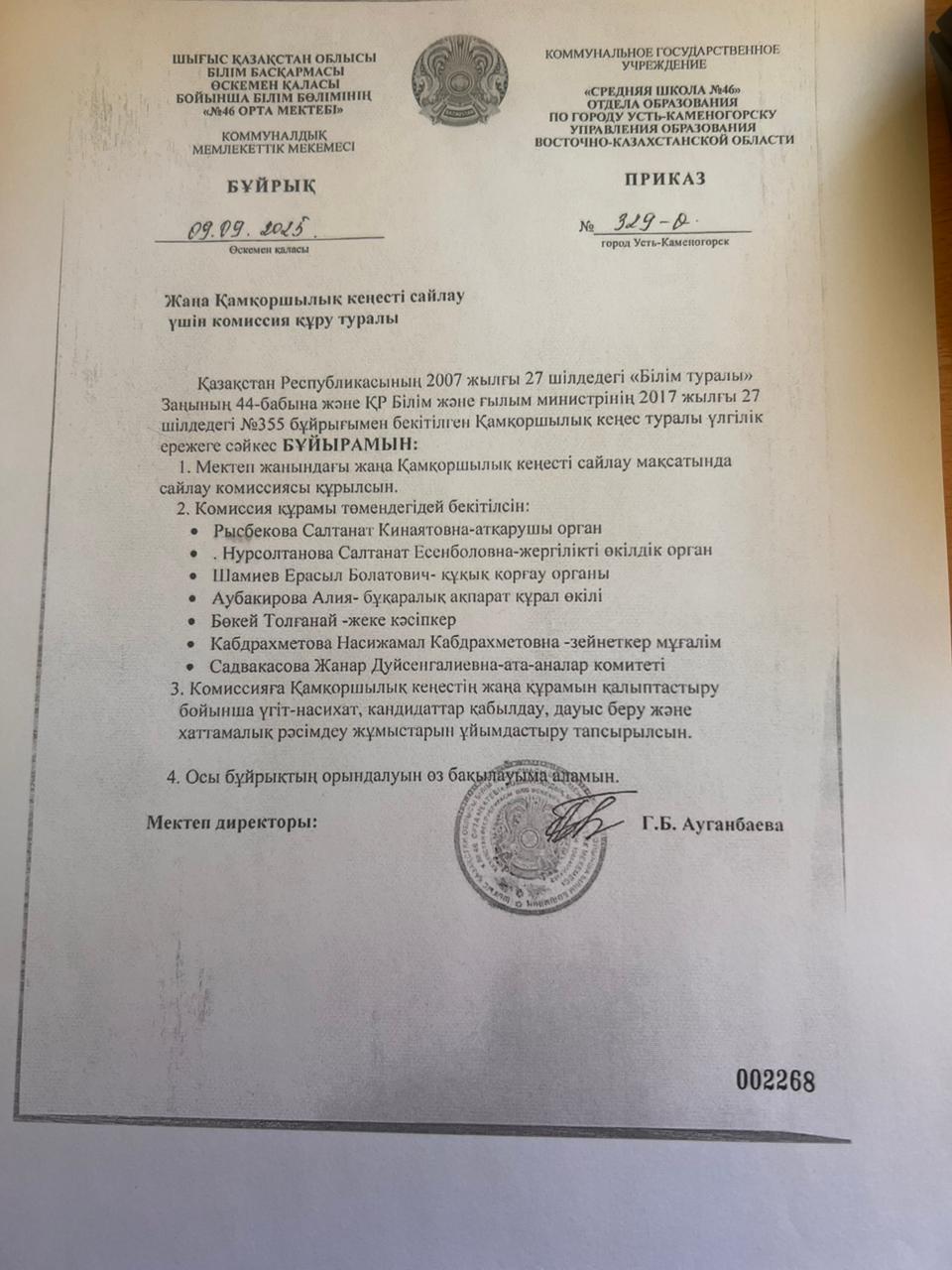 Жаңа Қамқоршылық кеңесті сайлау үшін комиссия құру