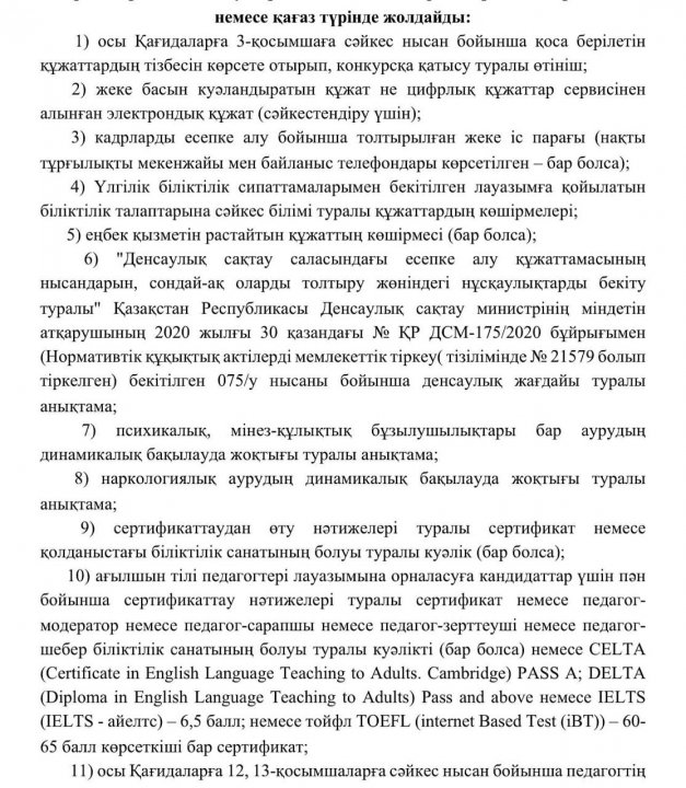 Хабарландыру. 2023-2024 оқу жылында бос және уақытша бос лауазымына педагогтерді тағайындау үшін конкурс жариялау.