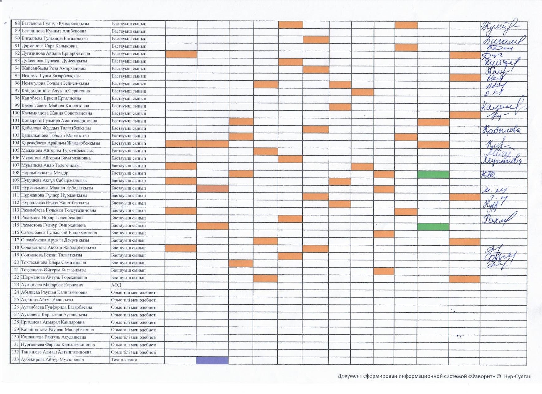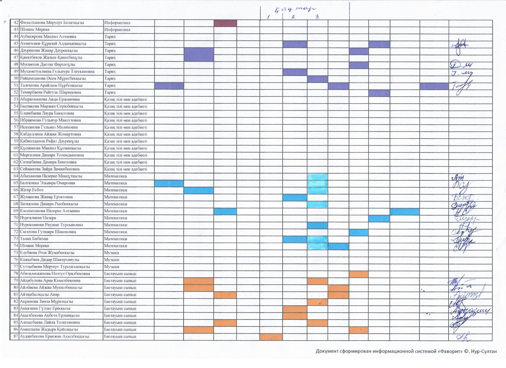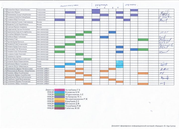 Сабаққа қатысу кестесі