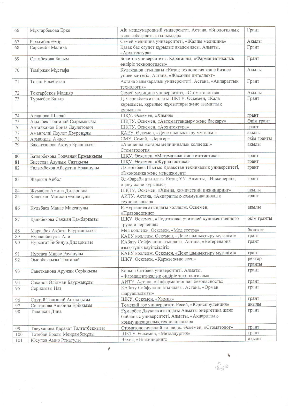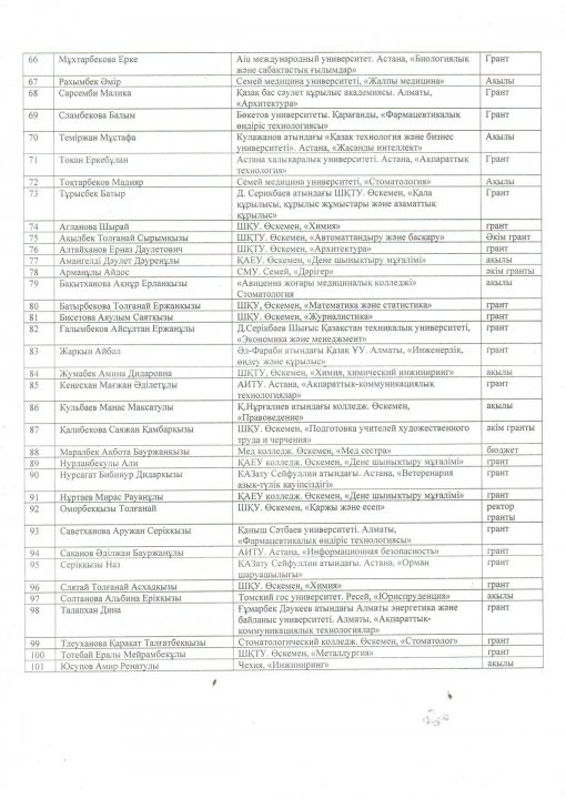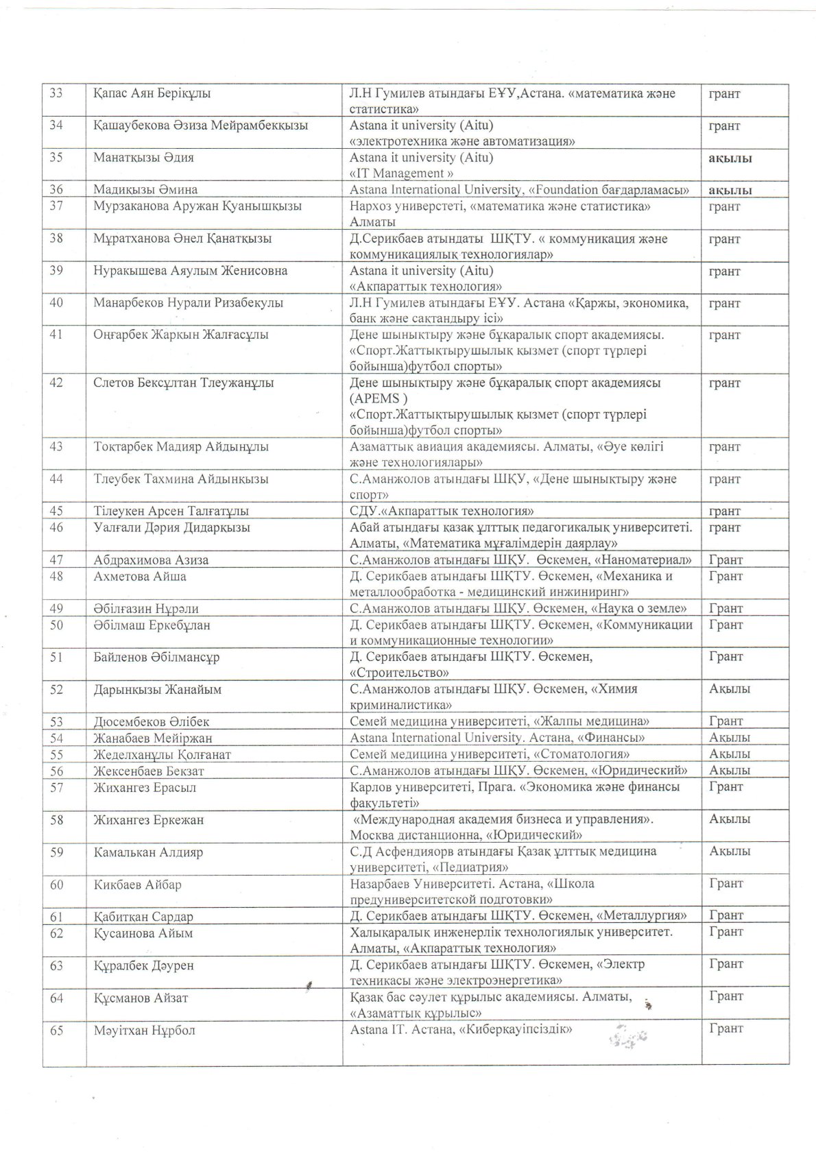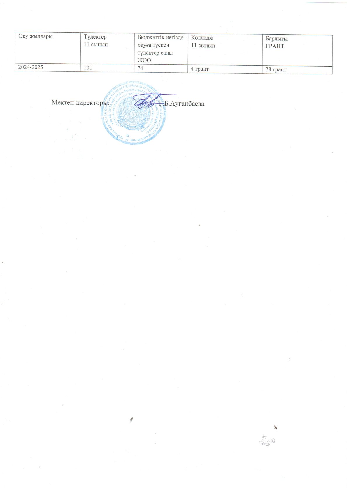 11-сынып түлектерінің 2024-2025 жж оқуға грантқа түсуі