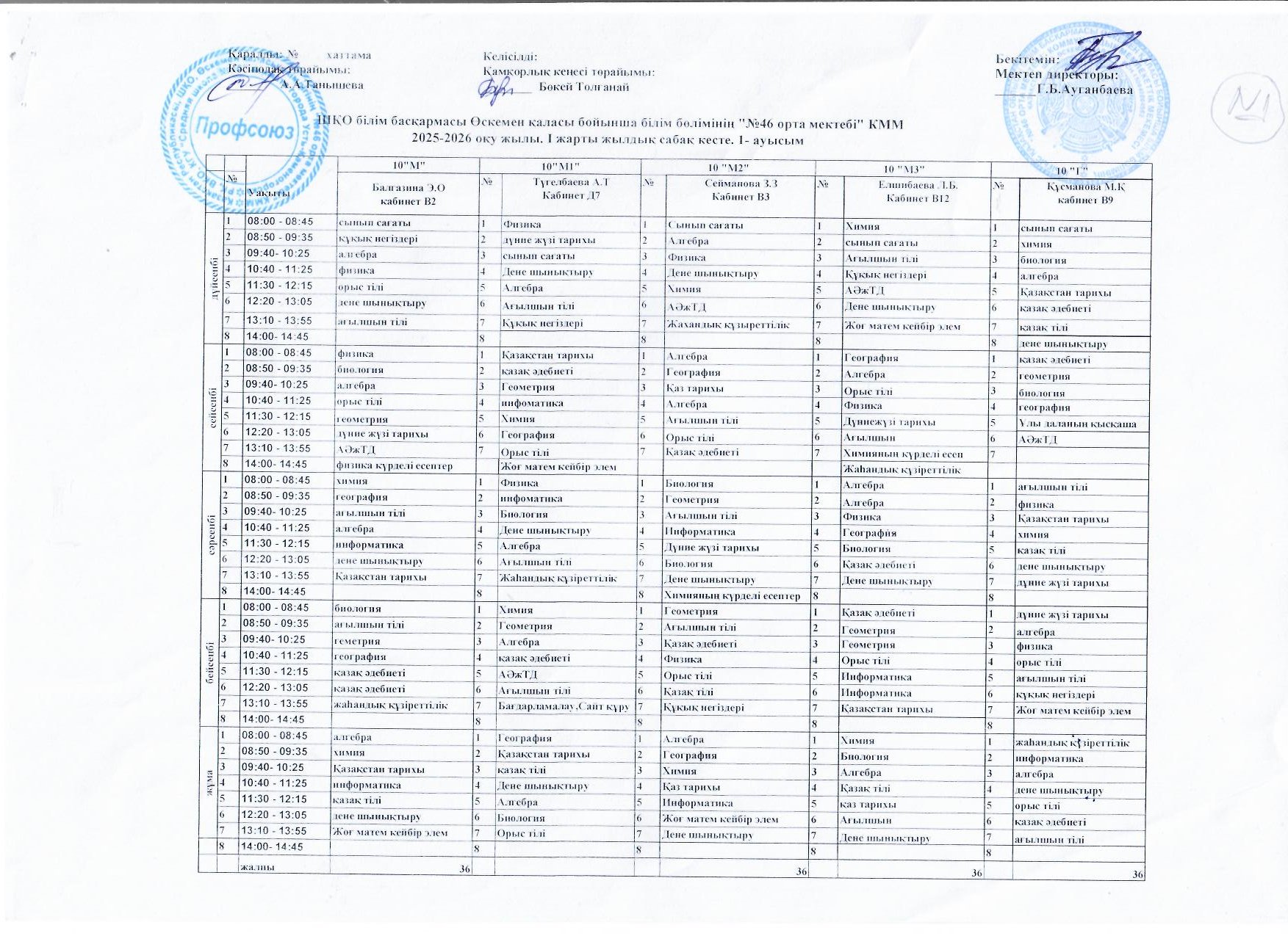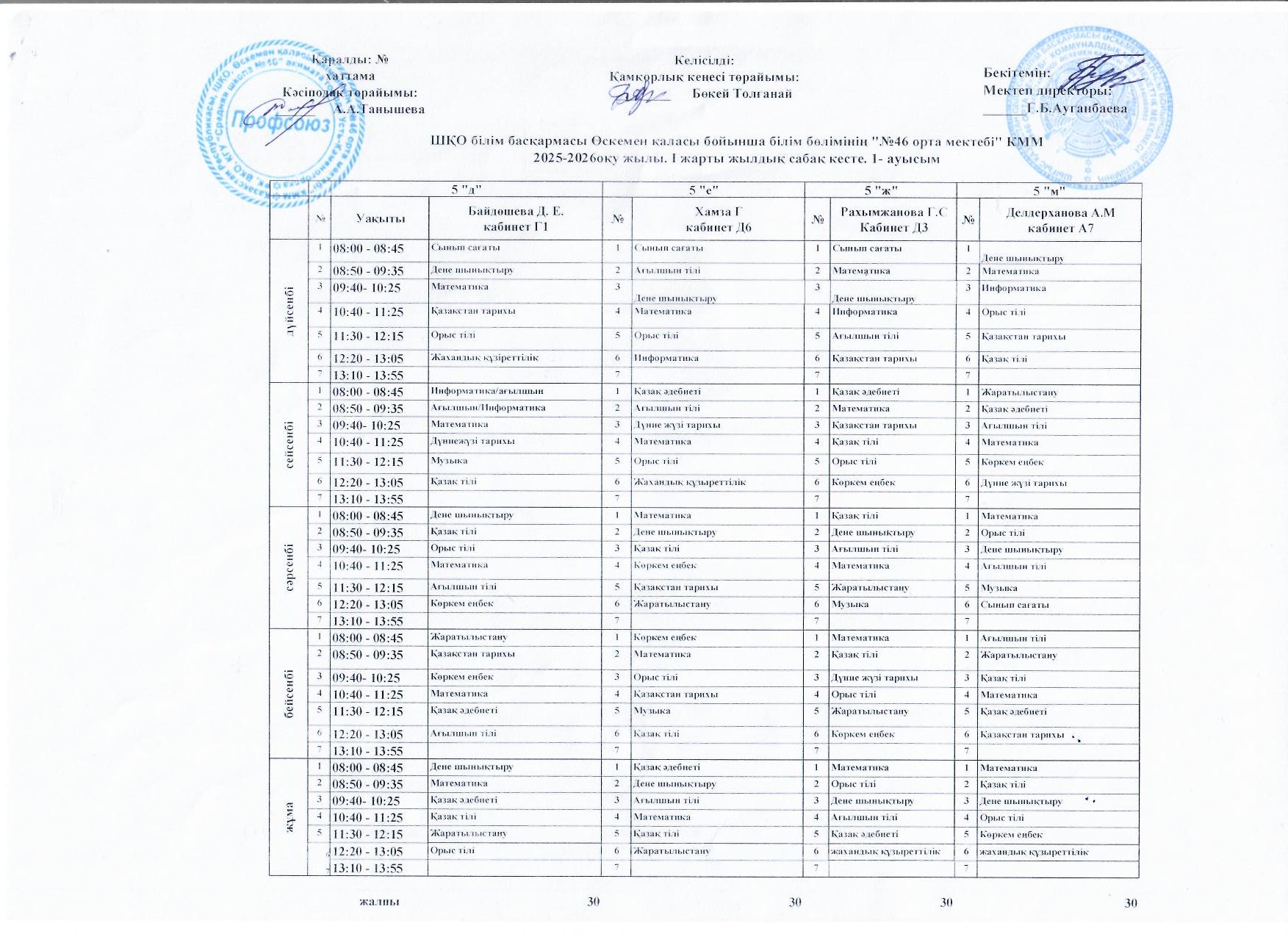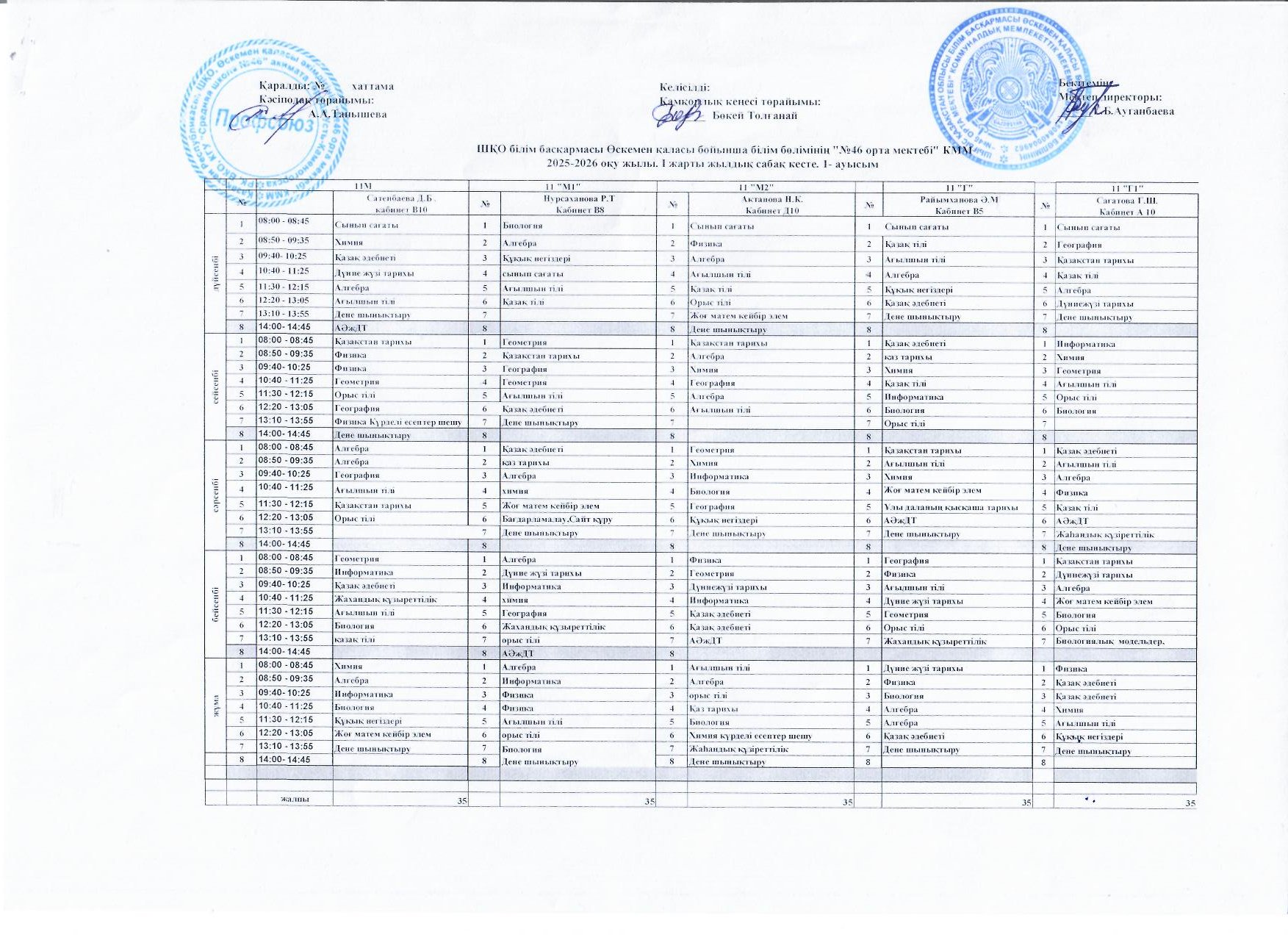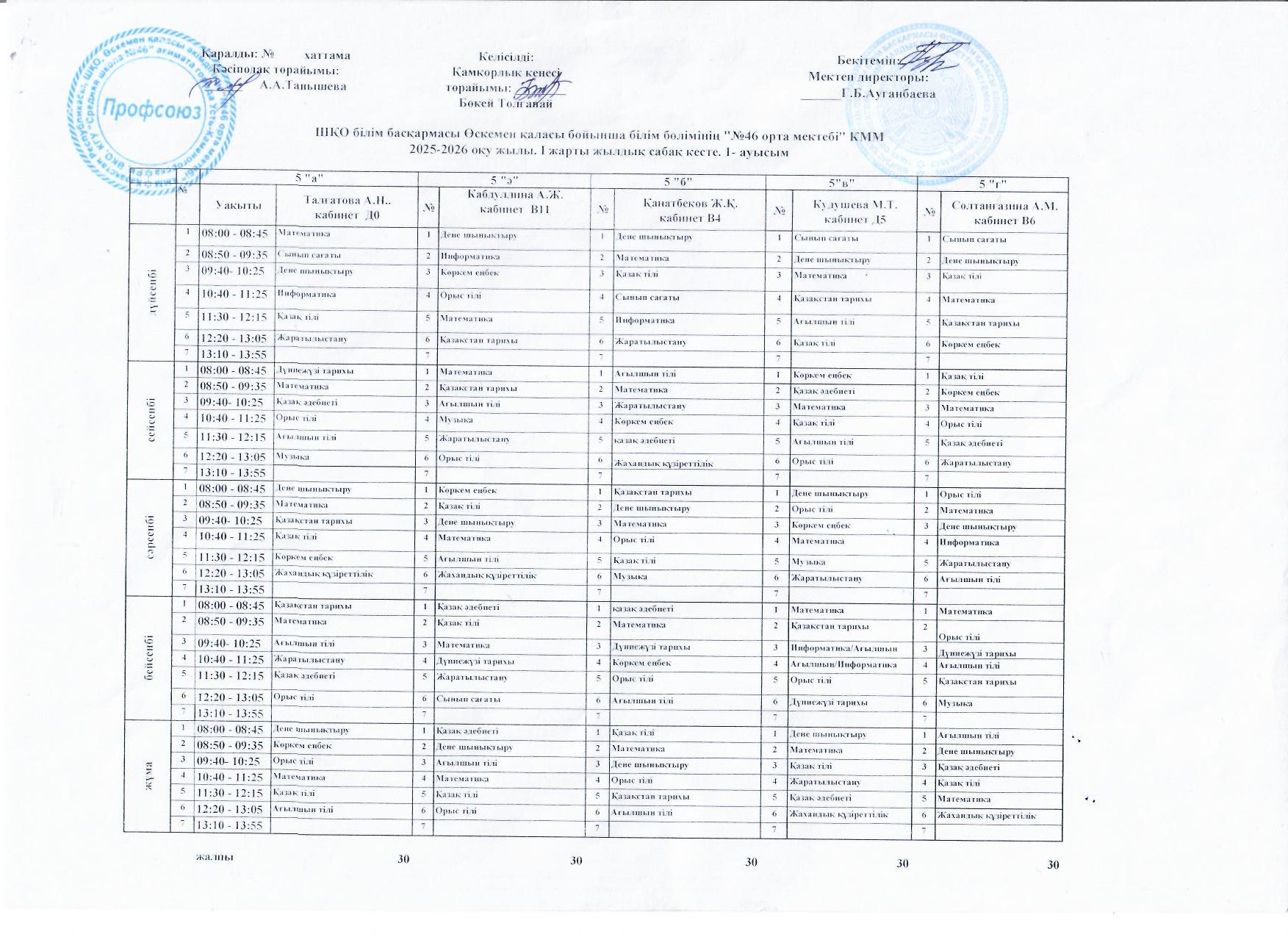 Сабақ кестесі 2025-2026 жж I жарты жылдық