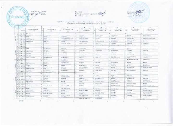 Сабақ кестесі 2020-2021 жж
