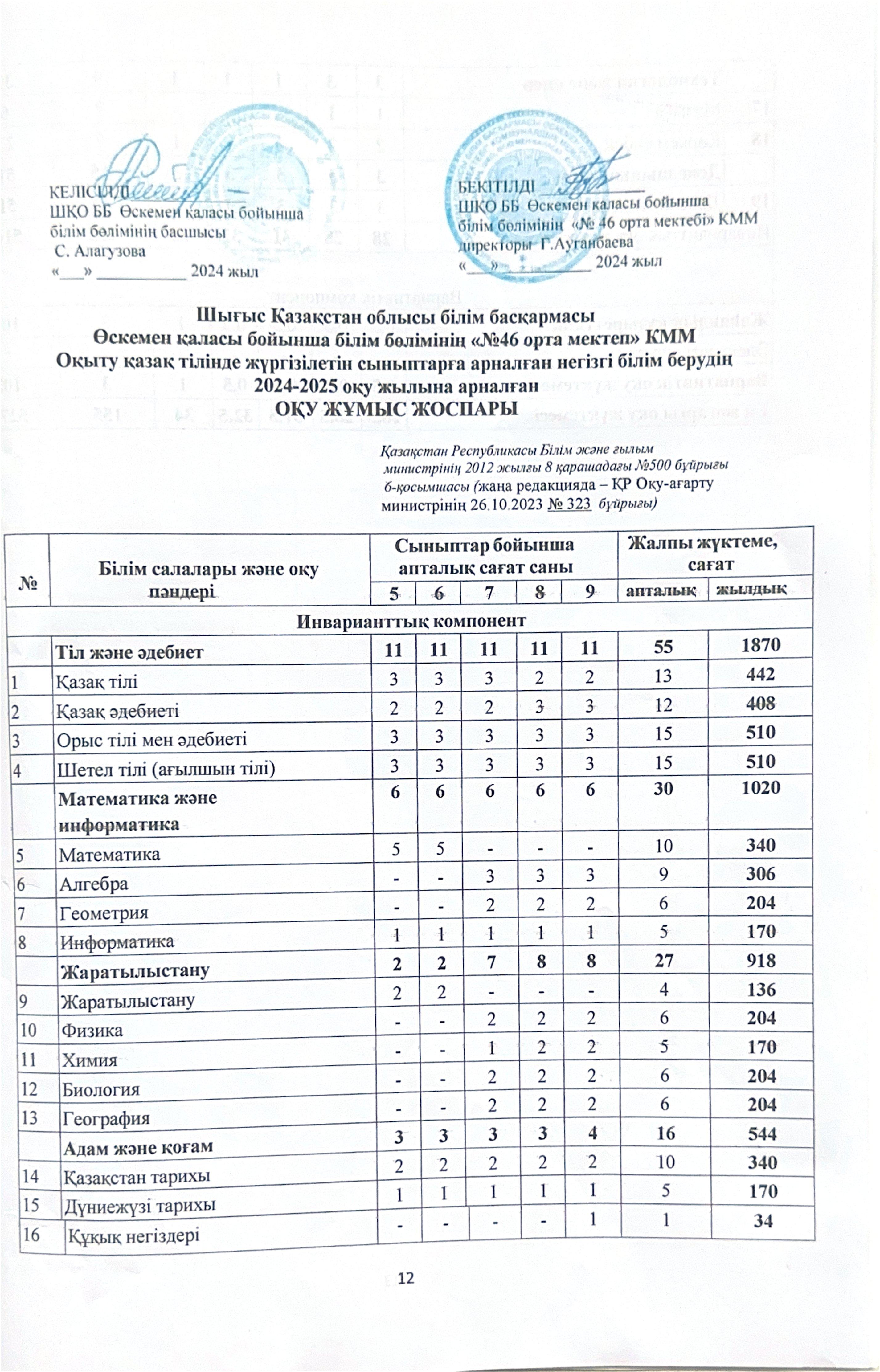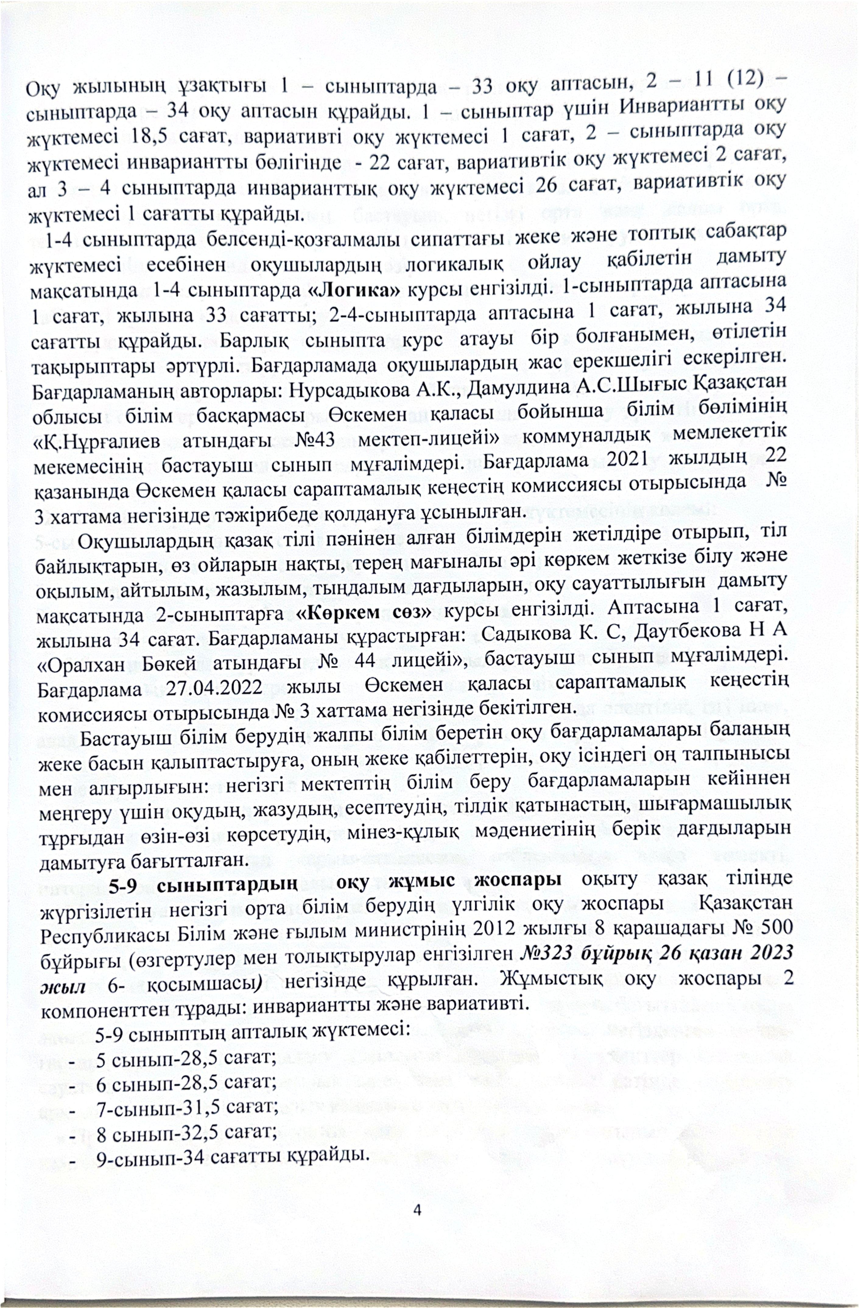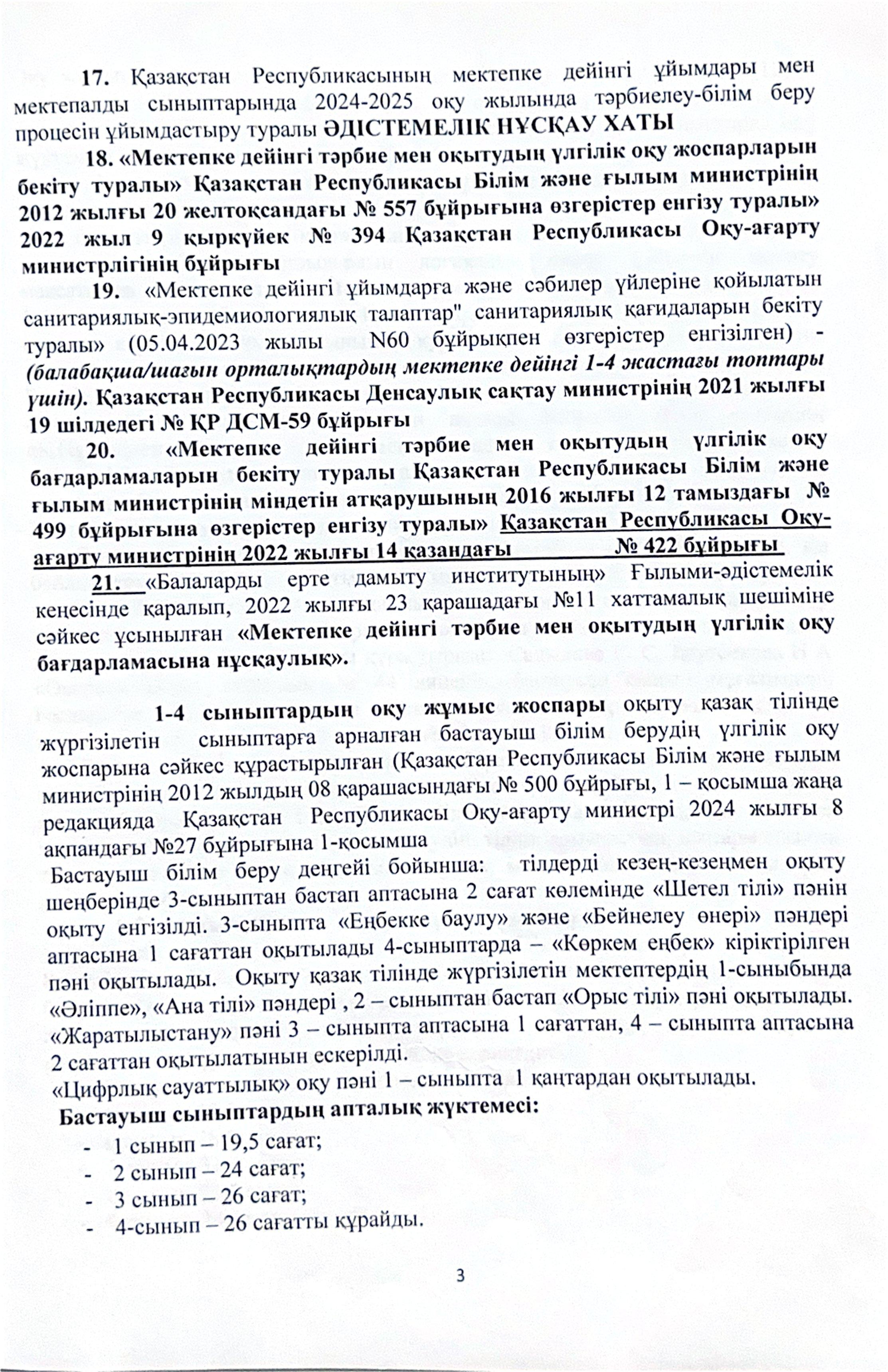 2021-2022 жж. Типтік оқу жұмыс жоспары