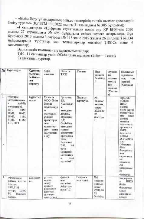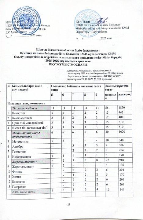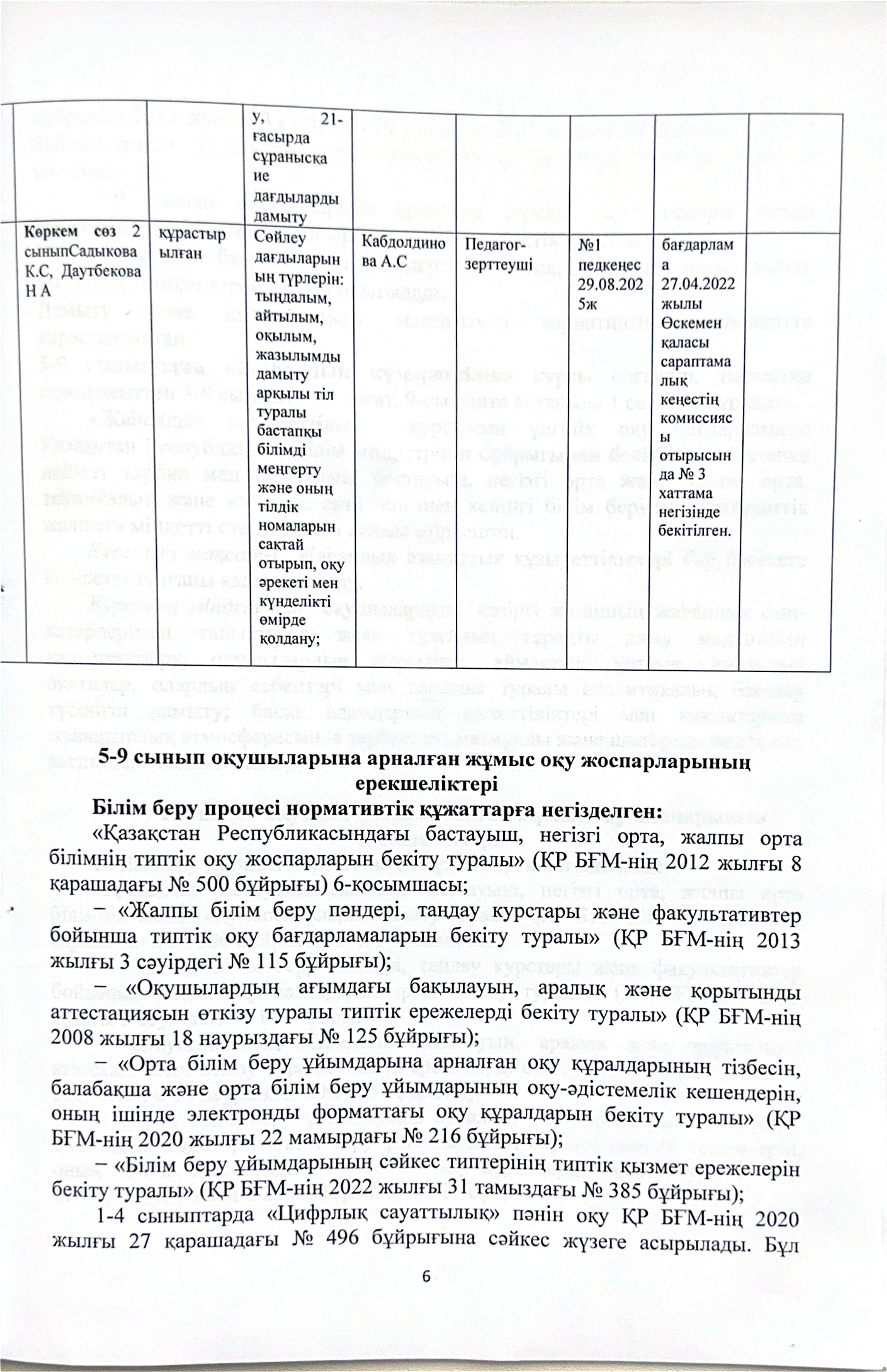 2021-2022 жж. Типтік оқу жұмыс жоспары