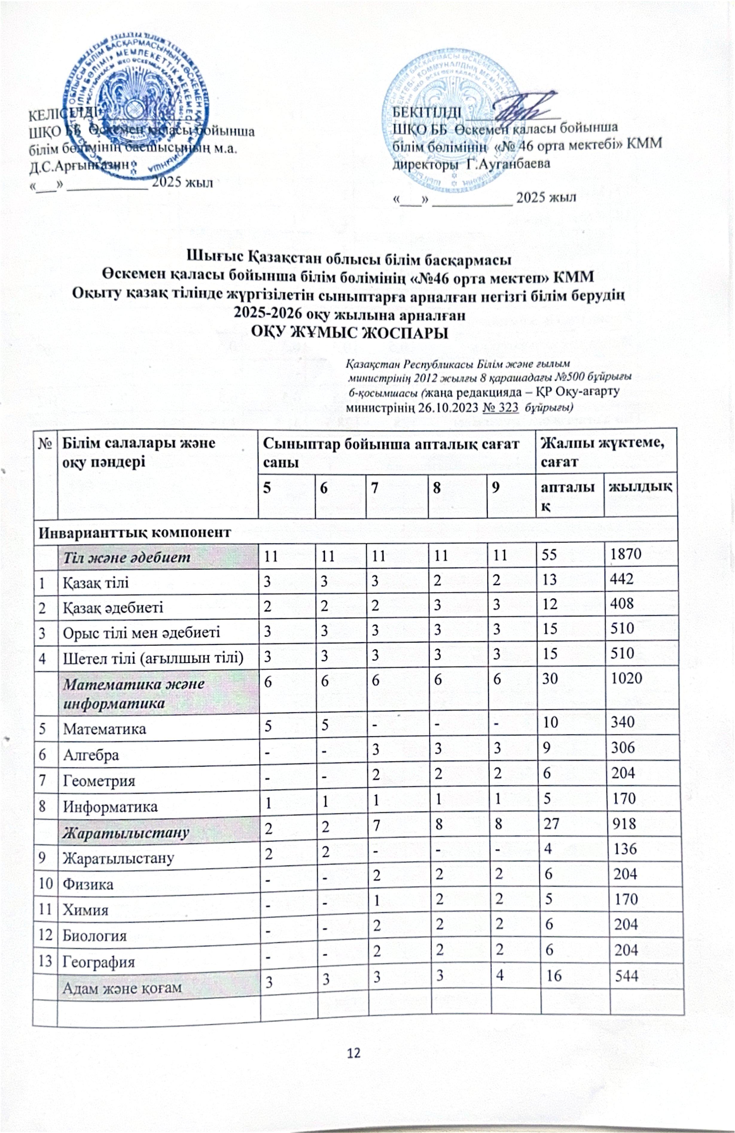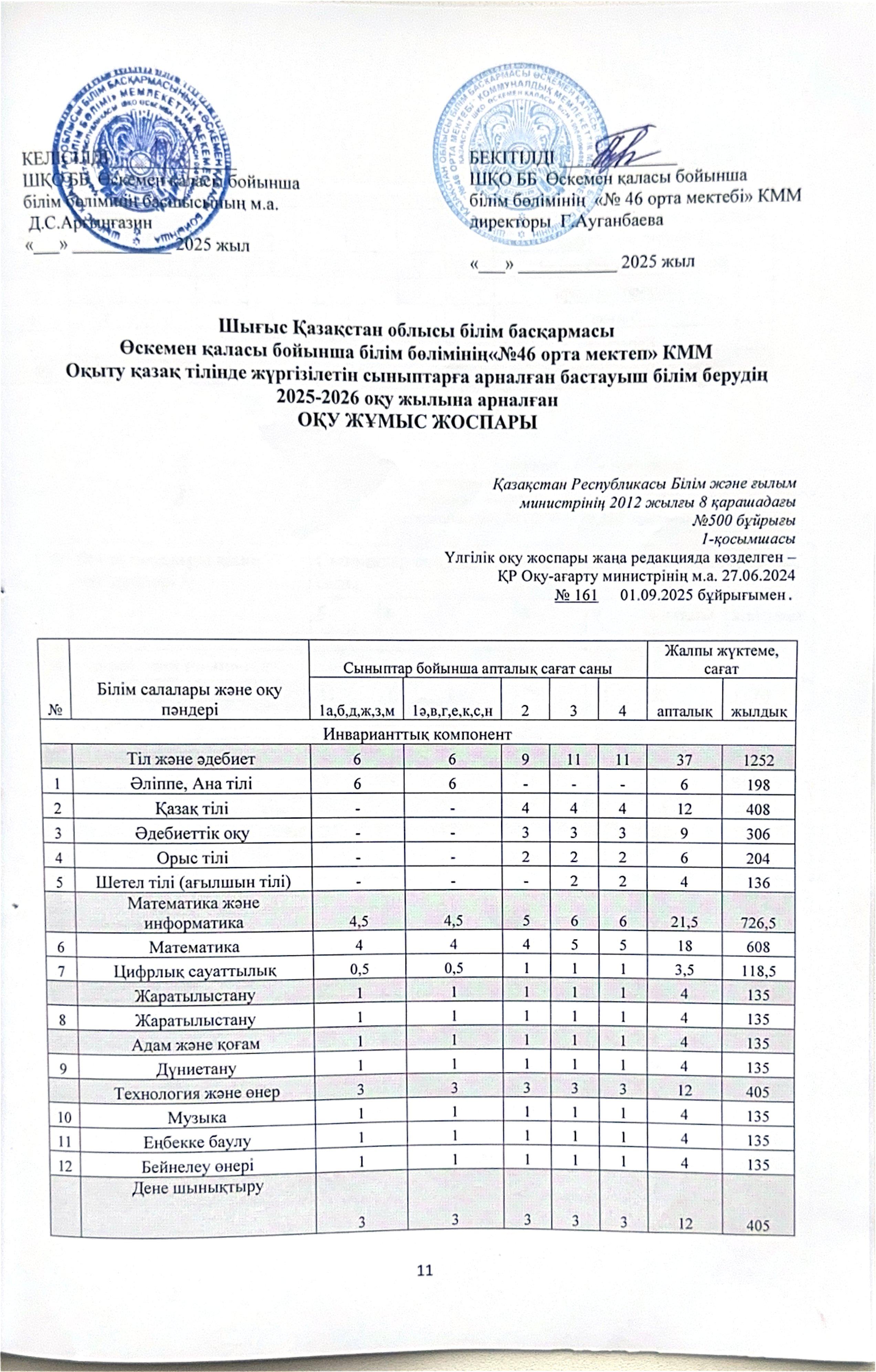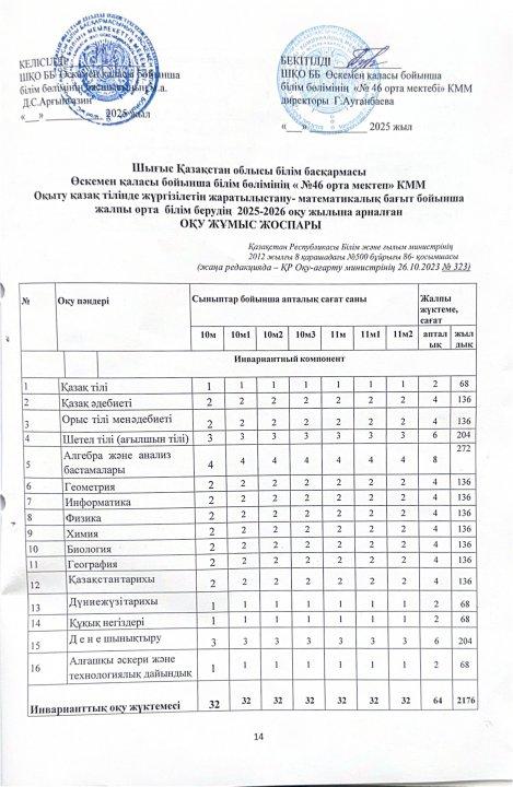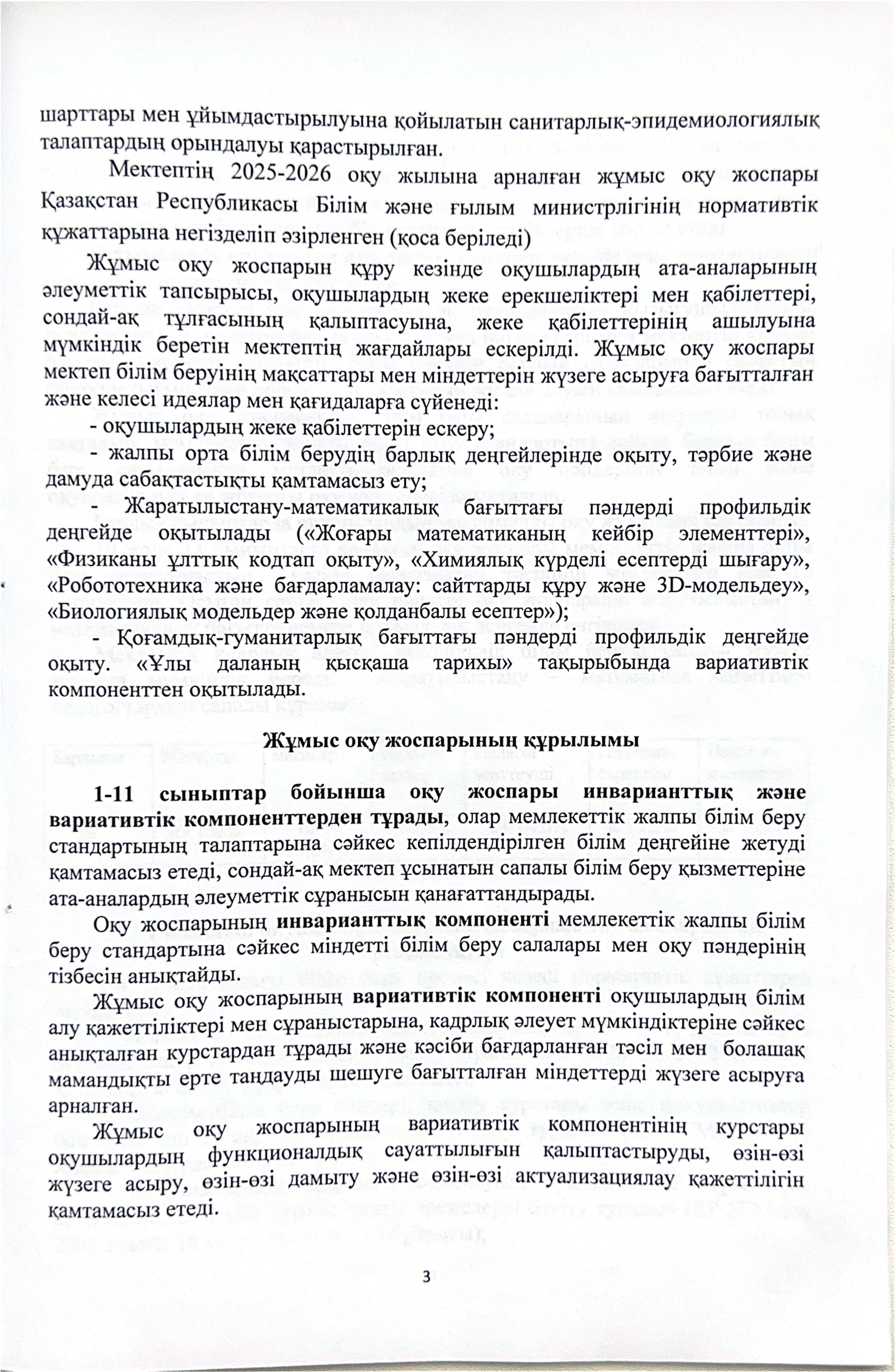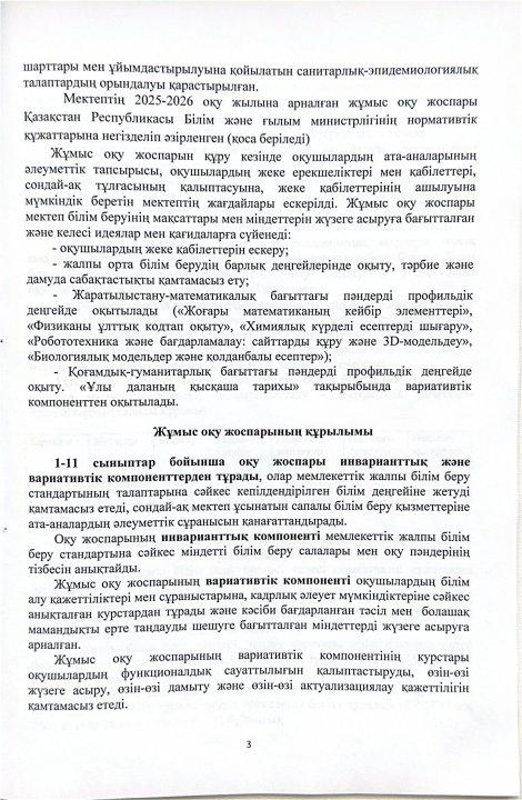 Даярлық сынып оқу жоспары 2025-2026 жж